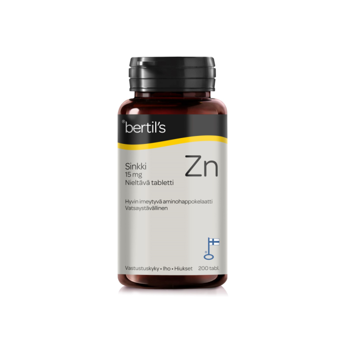 Kotimaiset bertil’s Sinkki -tabletit sisältävät aminohappokelatoitua sinkkiä.