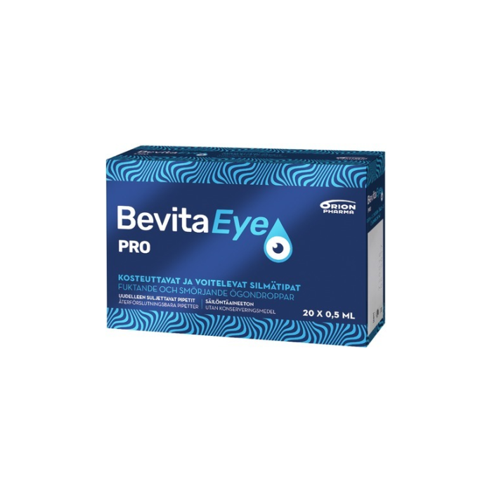 Bevita Eye Pro silmätipat lievittävät ympäristötekijöistä, silmiin kohdistuvista stressitekijöistä tai mekaanisista syistä johtuvaa kuivuutta, polttavaa tunnetta tai roskan tuntua. Silmätippojen pitoisuudet on säädetty niin, että ne voitelevat myös hyvin voimakkaiden epämukavuusoireiden yhteydessä.