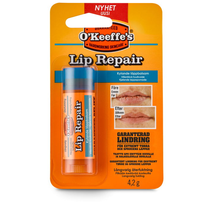 O´Keeffe´s viilentävä huulirasva muodostaa joustavan suojakerroksen, joka suojaa ja hoitaa kuivia ja halkeilevia huulia. Koko päivän kestävä suoja yhdellä levityskerralla. Sisältää 24 kertaa enemmän dimetikonia, kuin mitä minimissään ihon suojaukseen vaaditaan. O´Keeffe´s on ainoa huulivoide, joka sisältää Polysilicone 11:sta - monikerroksinen joustava huulivoide, joka laastarin tavoin suojaa huuliasi.