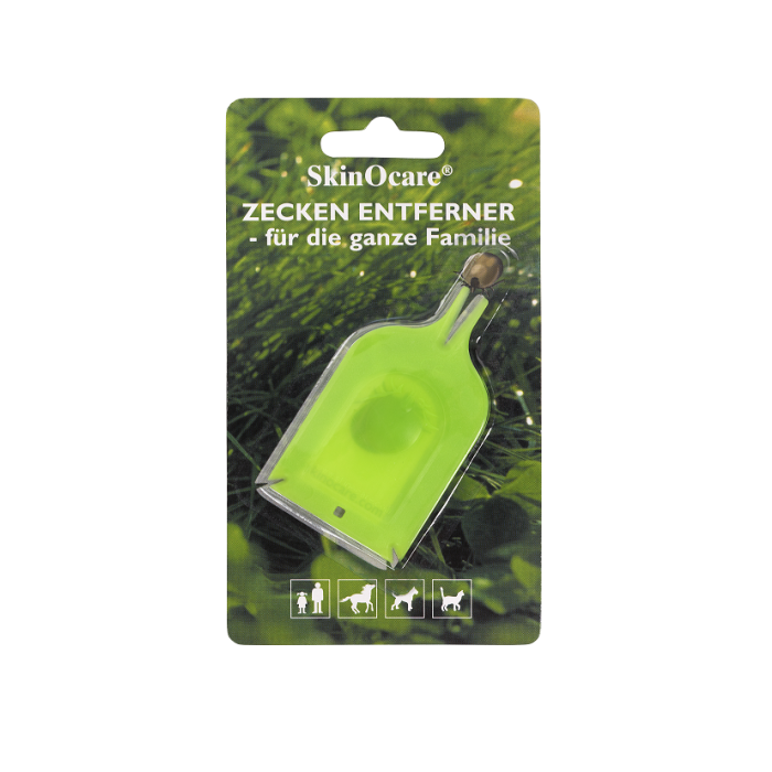 Helppokäyttöinen SkinOcare sopii punkkien poistamiseksi kaikenikäisistä ihmisistä ja eläimistä. Poistimessa on kolme erikokoista kiilanmuotoista lovea punkkien irrottamiseksi.